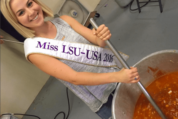 The biggest thing I wanted to do as Miss LSU was help people, in any way that I could. First, I got to be a celebrity waiter to raise money for the Children’s Advocacy Center, and then I helped cooked for volunteer after our devastating floods. When times get tough, help your neighbor!