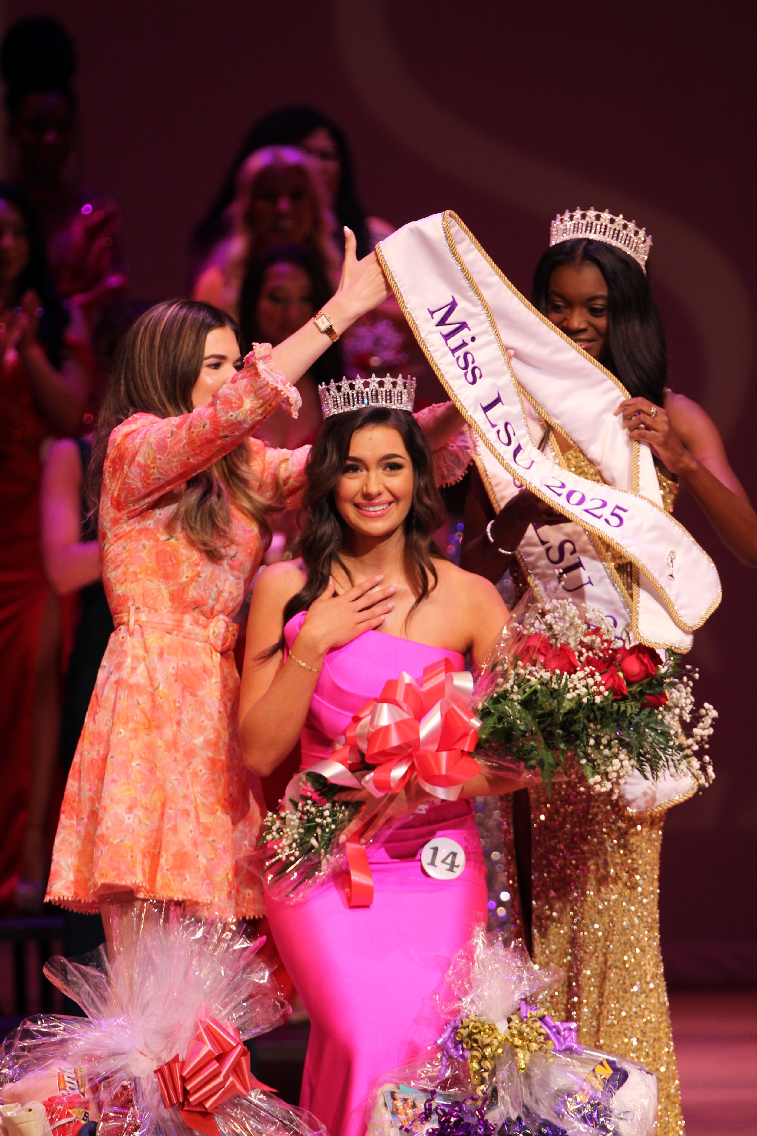 Miss LSU is judged based on the USA pageant system; meaning each competition is worth the same amount and there is no talent competition. Contestants will be judged in four equal categories – Personal Interview, Swimsuit, Evening Gown and an On-Stage Question. We select judges throughout the Southern region of Louisiana. Judges can include celebrities, business professionals, and distinguished LSU alumni! There will be a total of five judges. In addition to crowning our Miss LSU, we award winners for the categories of Miss Congeniality, Miss Photogenic, My Miss LSU (audience/social media favorite), Swimwear, Evening Gown, and Interview.